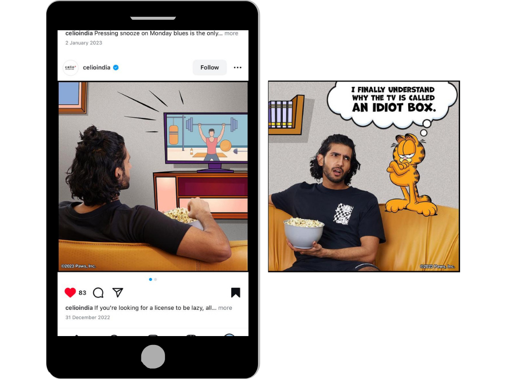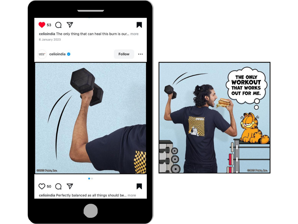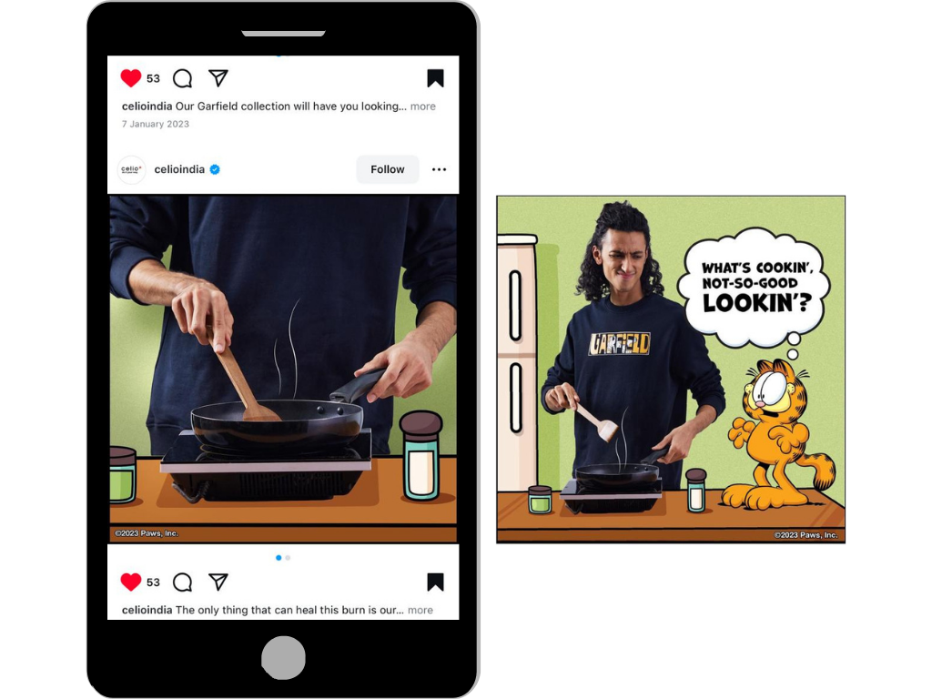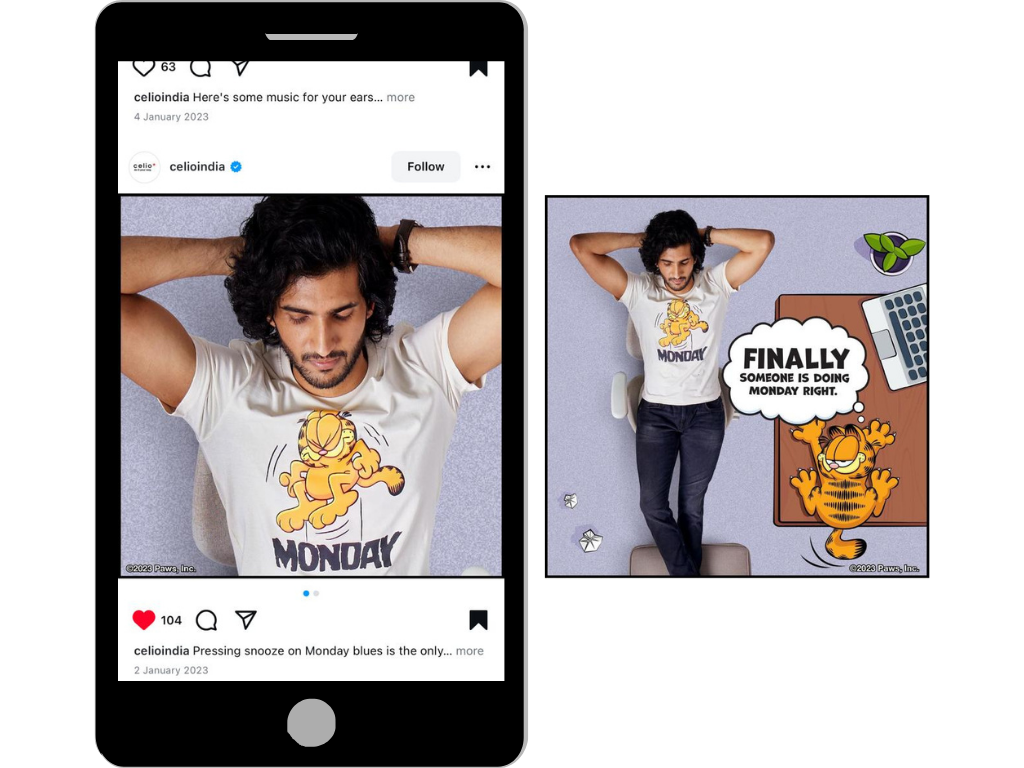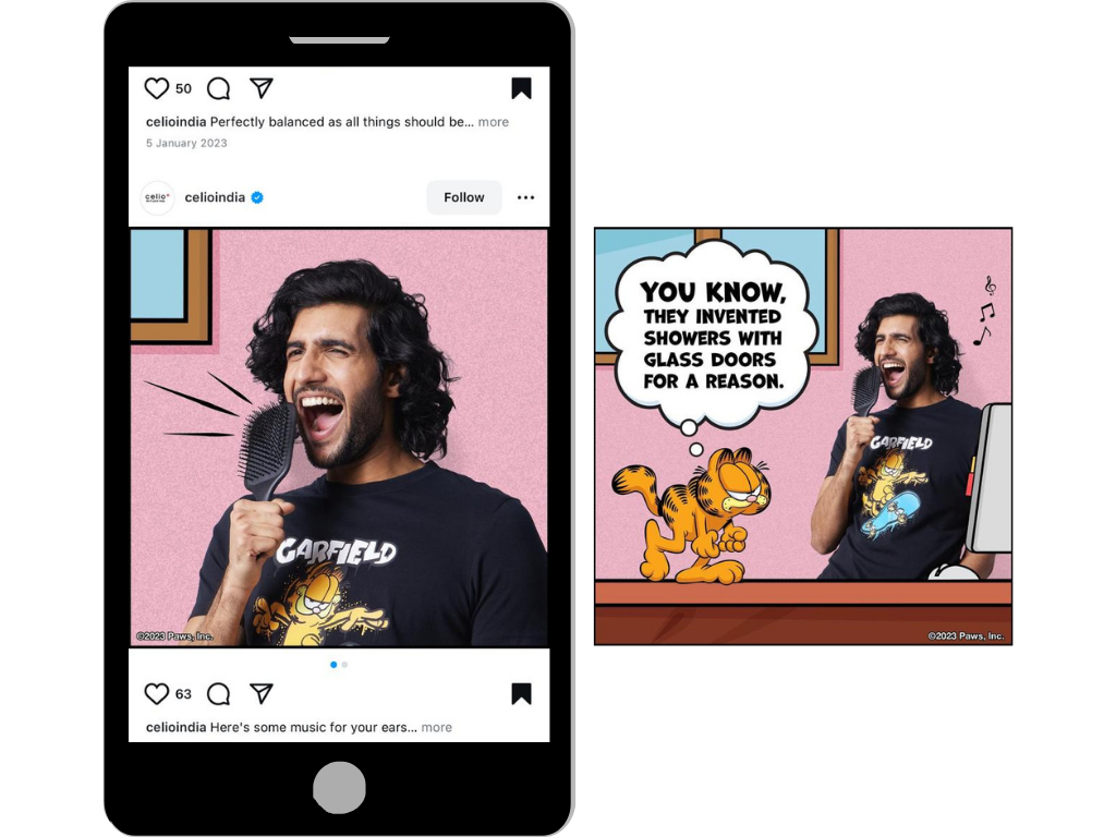 A comic strip style campaign that relied on quirky copy celebrating Celio’s classic style with Garfield’s playful charm.