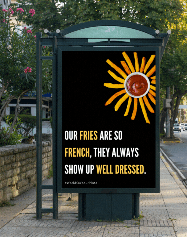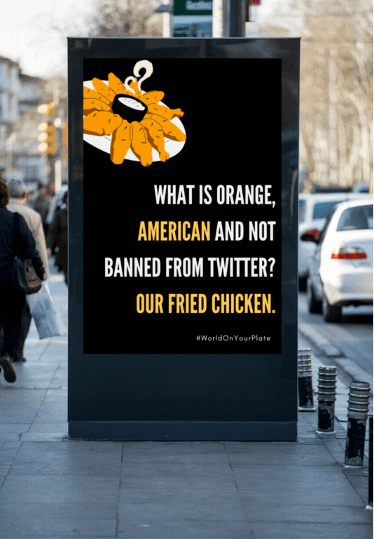 A food truck that used humorous copy to tell its customers that it serves cuisines from around the world [Spec ad].